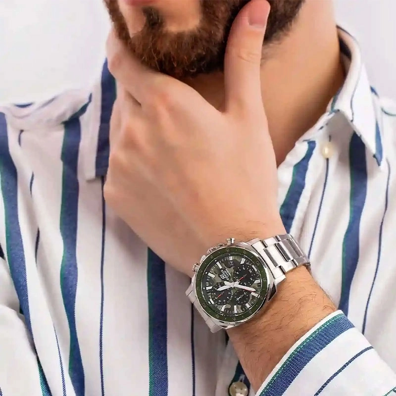 آنالوگ: 3 عقربه (ساعت، دقیقه، ثانیه)، 3 صفحه مختلف برای نمایش زمان کرنومتر (ثانیه، دقیقه، 1/10 ثانیه)
